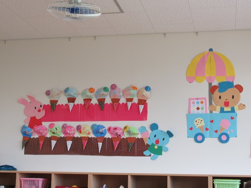 最後に、名前を書いたスプーンをつけて完成です。おいしそうなアイスクリームが出来上がりました!