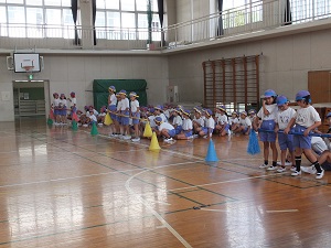 今日は80m走の走順の確認と、「ハリケーン半端ないって」の練習を行いました。