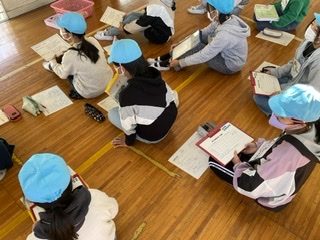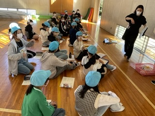 体育館で、養護教諭から当日の流れややることについて説明を受けました。