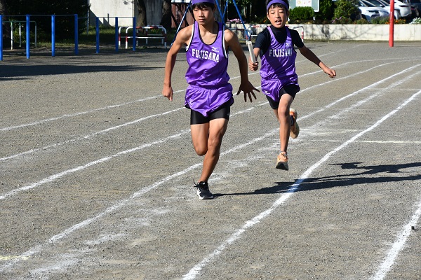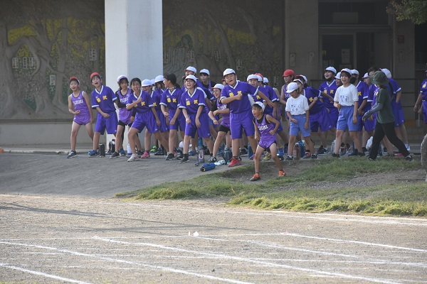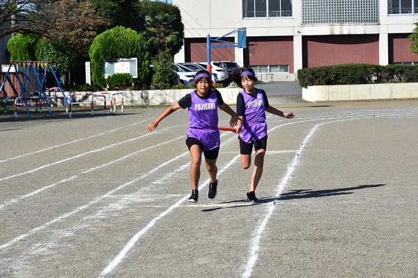 〇5年生を中心に全学年で応援 〇リレーのデモンストレーション 〇バトンパス きっとうまくいく!