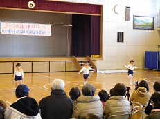 祖父母会・生活発表会 今日は、幼稚園の一大イベントである「祖父母会」と「生活発表会」が小学校の体育館で行われ、おじいちゃん、おばあちゃんを含めたたくさんの方に来ていただきました。