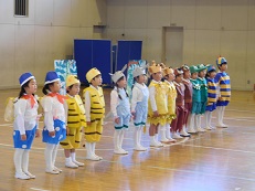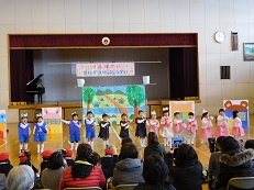 ふじ組14名、ひばり組14名の園児が、これまで練習してきた歌や楽器の演奏、劇などを、大勢の前で発表しました。