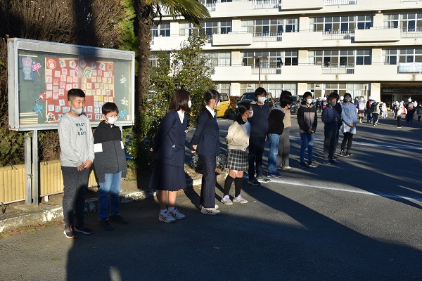今日は藤沢小学校の生徒会本部役員8名が小学校に来て、小学生と一緒に挨拶運動をしました。さすが中学生。声が遠くまで響き、元気に挨拶運動やっているね!という雰囲気が学校に広がりました。