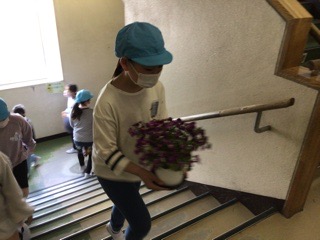 入学式で使った机や花を各教室に運んでくれました。