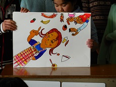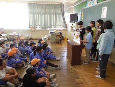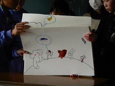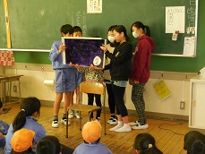 今朝は、図書委員会の子達が手作りの紙芝居の読み聞かせをしに来て