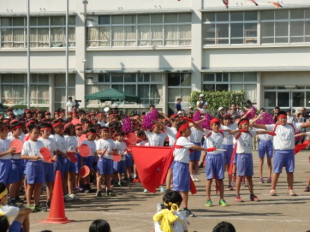 12日に運動会を行いました。日差しが強く、汗ばむ陽気の中、子どもたちは一生懸命競技に取り組んでいました。