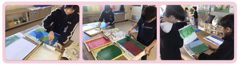 図工の時間では、スチレン版画の印刷に挑戦しました!インクや刷り方一つで作品の出来上がりが大きく変わります!今から作品の出来上がりが楽しみです!